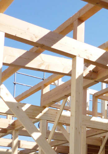 他社のように強度や耐久性が不安な集成材は使用していません。